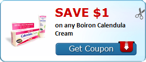 Save on Boiron Calendula Cream at CVS/Pharmacy starting 8/23/15 Boiron Calendula Cream will be on sale for $8.99 plus you'll earn $6.00 ExtraBucks with your purchase when you use your ExtraCare card! Plus when you head to the Boiron Calendula website, you can print a coupon for $5.00 off your purchase to save even more! Boiron Calendula Cream, On Sale $8.99 Get $6.00 ExtraBucks